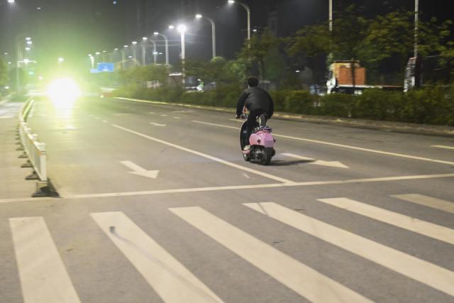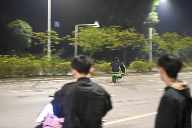 11 月 25 日晚,在广西某市街头,一些少年骑着改装过的电动自行车炫技。